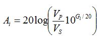 Por otra parte, en cada caso se aplica un voltaje de excitación VP, una ganancia Gi (en dB) para obtener una indicación de pico VS (en video). Suponiendo que, con G=0 dB, un 100% de escala corresponde a 1 V, las pérdidas de inserción son: